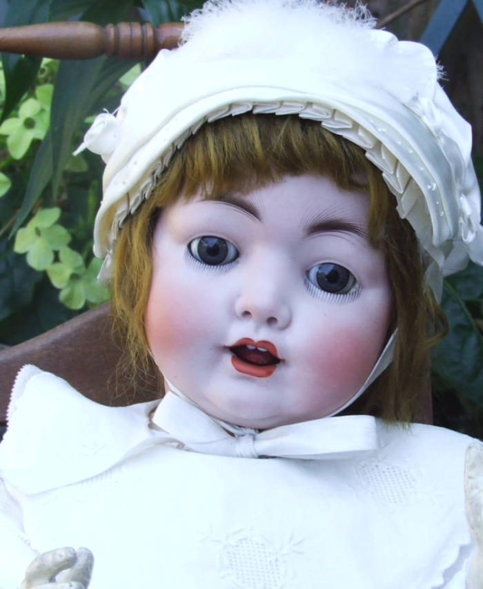 She has her original card pate and mohair wig.